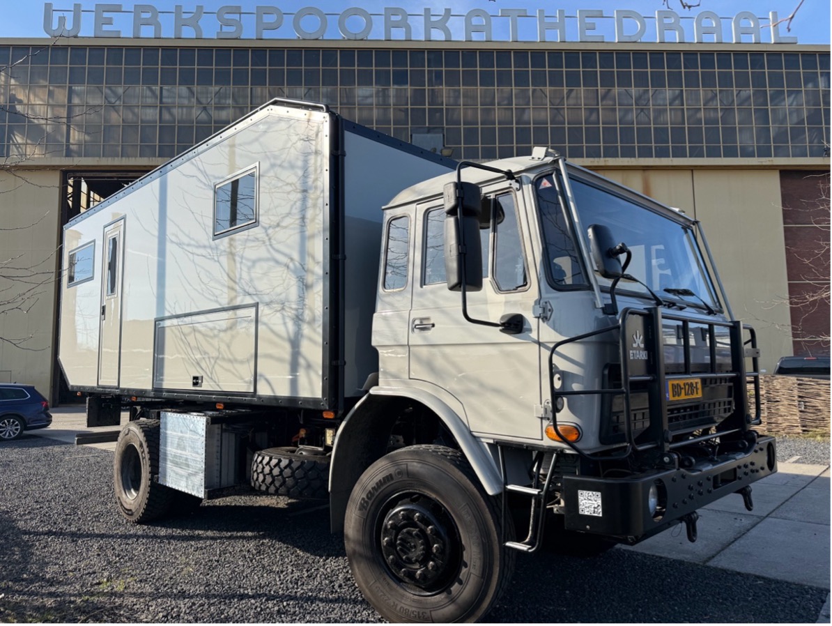 De legertruck, een DAF “viertonner” uit 1992, heeft ondanks de ingrijpende metamorfose zijn karakter behouden. Daarnaast beschikt de truck over alle luxe en comfort die nodig zijn voor een ontspannen verblijf, waar dan ook in de natuur.